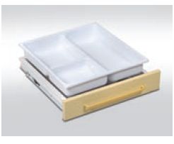 Wkład do szuflady niskiej. Z tworzywa ABS trzypodziałowy wewnętrzny o wysokości użytkowej wkładu 80 mm.