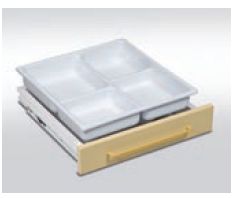 Wkład do szuflady niskiej. Z tworzywa ABS czteropodziałowy wewnętrzny o wysokości użytkowej wkładu 80 mm.