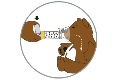 AeroChamber Plus Flow-Vu umożliwia efektywną inhalację przy pomocy komory inhalacyjnej z maską dla dzieci od 1 do 5 roku życia.