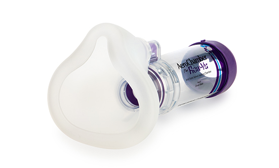 AeroChamber Plus Flow-Vu umożliwia efektywną inhalację przy pomocy komory inhalacyjnej z maską dla dorosłych.