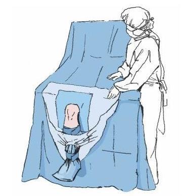 - Serweta z otworem elastycznym o śr. 6cm i workiem na płyny z kształtką i zaworkiem z laminatu L3 320x240cm 1szt.