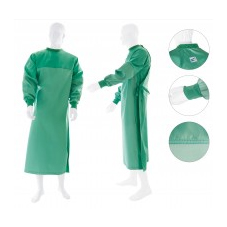 Fartuch zapewnia wysoki komfort podczas użytkowania oraz stanowi pełną ochronę przed szkodliwymi czynnikami. Tkanina poliestrowa, z której wykonane są ramiona i tylne części fartucha, charakteryzuję się dobrą przepuszczalnością powietrza. Przednia część wyrobu oraz przedramiona wykonane są trójwarstwowego laminatu gwarantującego barierowość.
