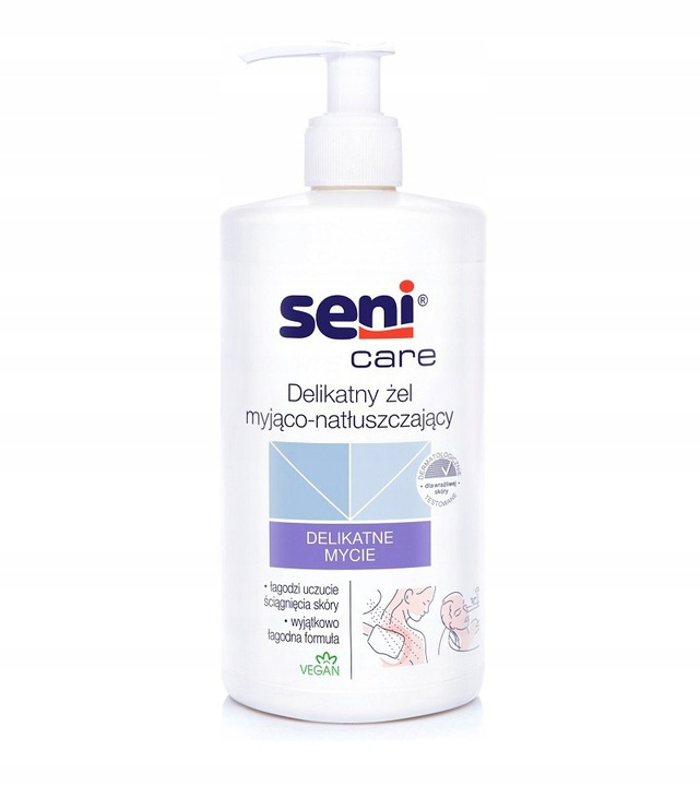 Żel myjąco-natłuszczający Seni Care przeznaczony do codziennego oczyszczania skóry wrażliwej. Można go stosować jako zamiennik zwykłego mydła. Odpowiedni dla mycia całego ciała, utrzymuje odpowiedni poziom pH. Działa antybakteryjnie. Odżywia, nawilża i wzmacnia barierę hydrolipidową skóry.