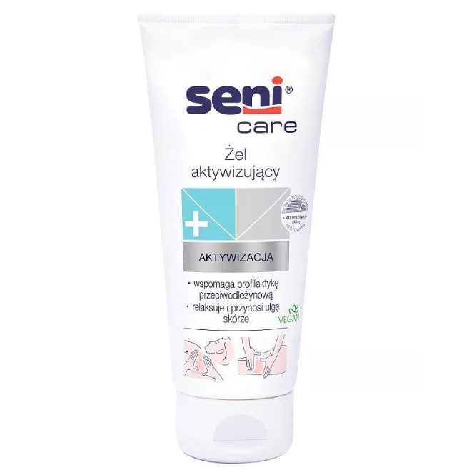 Żel aktywizujący Seni Care z guaraną i kofeiną, regularnie wmasowywany w skórę ciała lub stosowany do oklepywania pleców, wspomaga mikrocyrkulację krwi i dostarcza skórze odpowiednich składników odżywczych.