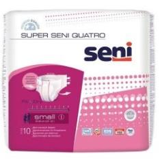 Super Seni Quatro to oddychające pieluchomajtki o podwyższonym poziomie chłonności przeznaczone dla osób z najcięższym problemem nietrzymania moczu. Mogą być stosowane również w przypadku inkontynencji kałowej.