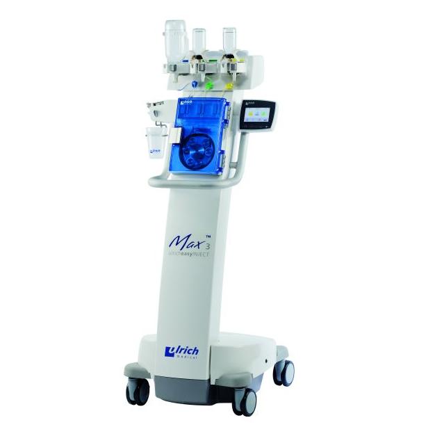 Wstrzykiwacz kontrastu MAX 3 firmy ulrich medical służy do dożylnego podawania nieradioaktywnych środków kontrastowych w celu poprawy jakości obrazowania w rezonansie magnetycznym.