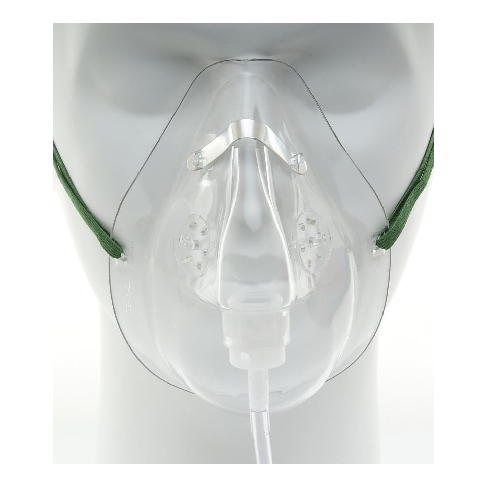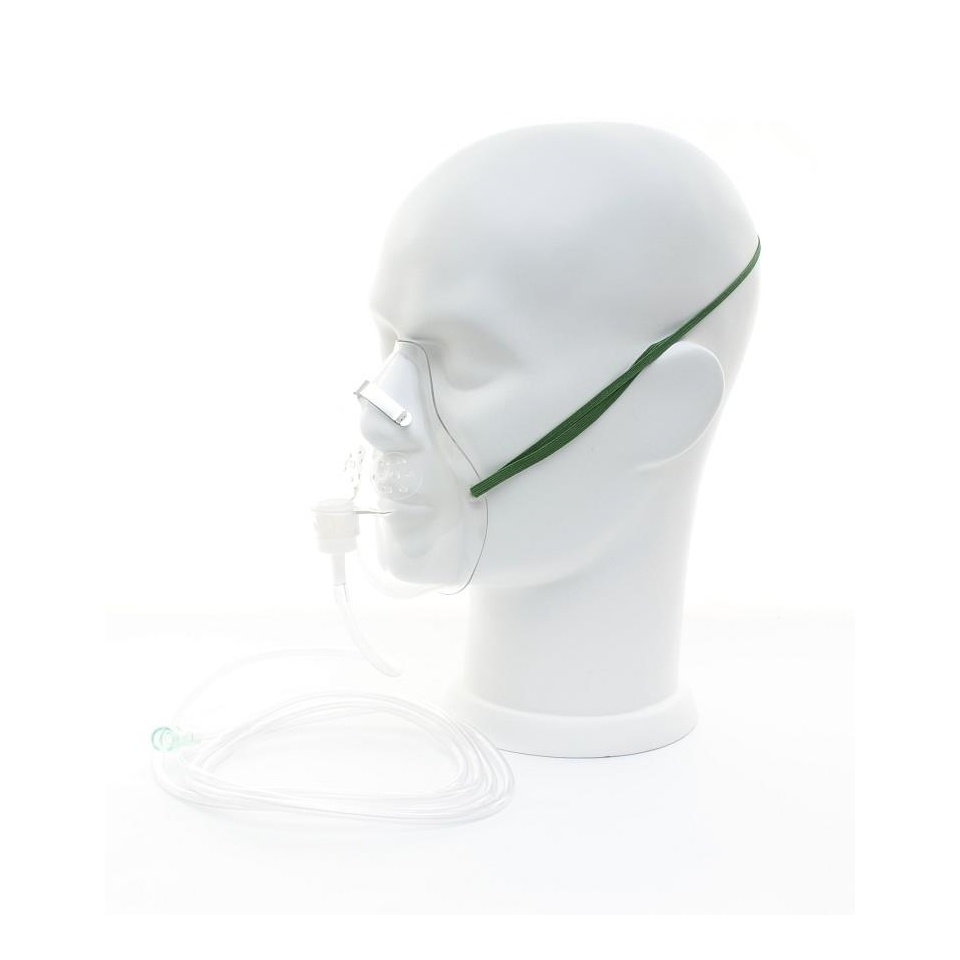 Wykonana z bezlateksowego miękkiego tworzywa z regulowanym klipsem dla lepszego dopasowania do twarzy pacjenta. Posiada przewód łączący o długości 2 m, który pozwala na bezproblemowe poruszanie się w obrębie źródła tlenu.