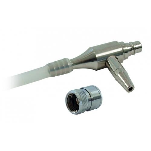 Mosiądz niklowany, z zaworem zwrotnym i adapterem.