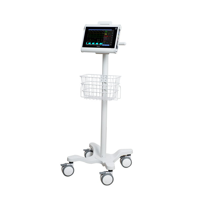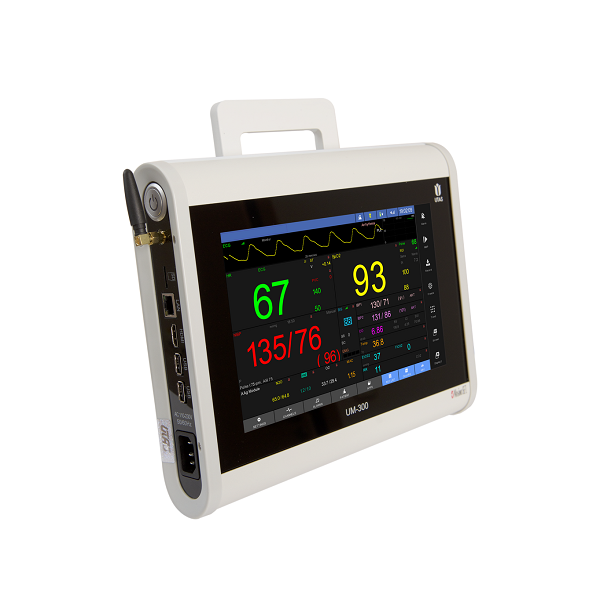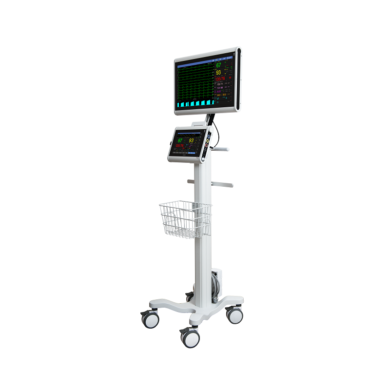 Kardiomonitor, który pełni jednocześnie funkcje transportowe jak i przyłóżkowe.