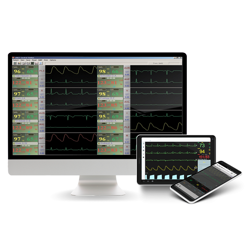 Stacja Centralna UNET-S zapewnia bezproblemowe monitorowanie — pełny cykl rejestracji, transmisji i wizualizacji danych: od punktu opieki do wypisu pacjenta.