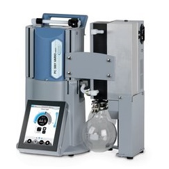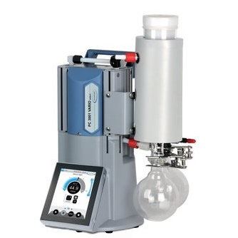 Pompa umożliwiająca precyzyjną kontrolę podciśnienia dzięki kontrolerowi VACUU · SELECT. Kontroler wykrywa wrzenie rozpuszczalnika i automatycznie dostosowuje prędkość silnika pompy. Wyposażona jest w system usuwania skroplonych oparów. Skraplacz oparów spalin umożliwia prawie całkowite odzyskiwanie rozpuszczalników.