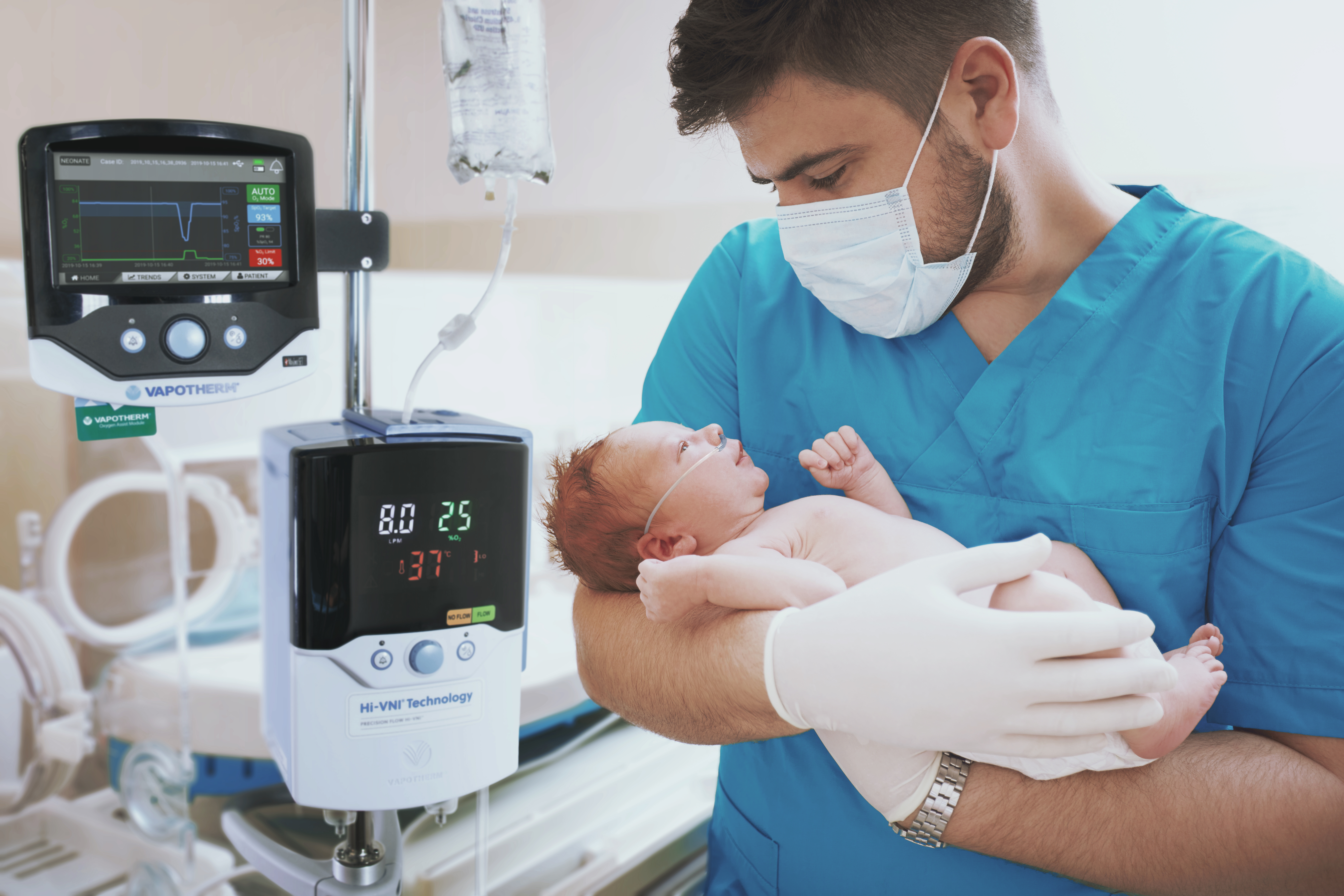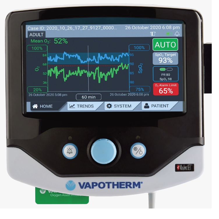 Automatyczna kontrola i zarządzanie oksygenacją dla terapii Hi-VNI Precision Flow: