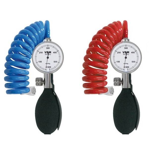 Gruszka z manometrem i drenem pozwalający manualnie osiągnąć:
