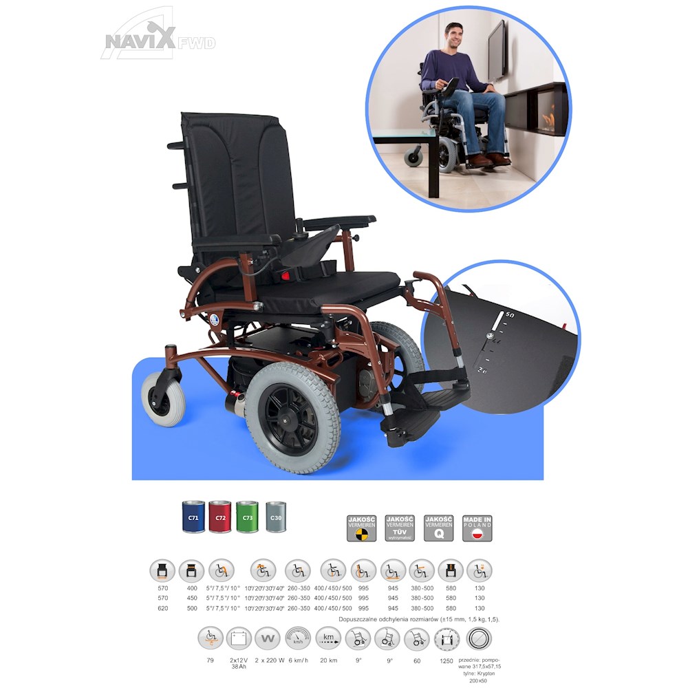 NAVIX to przede wszystkim zwrotność i doskonała manewrowalność w małych pomieszczeniach uzyskana dzięki kompaktowej konstrukcji i zastosowanemu napędowi na przednie koła. Wózek umożliwia ostre skręty w pomieszczeniach i ułatwia pokonywanie przeszkód, takich jak progi np. w pobliskim sklepie spożywczym. Przyjazny dla użytkownika, umożliwia dostosowanie do indywidualnych potrzeb. Ułatwia transfer użytkownika na łóżko, do samochodu, korzystanie z toalety itd. Navix zwiększa mobilność użytkownika, gdyż wózek o tak małych rozmiarach zmieści się nawet w niewielkim samochodzie.