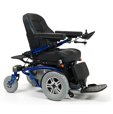Komfort, technologia, jakość, wytrzymałość. Terenowy wózek z napędem elektrycznym. Aktywne zawieszenie i wahacz zwiększają wydajność. Konstrukcja wózka umożliwia dopasowanie do indywidualnych potrzeb. Napęd na przednie koła pozwala łatwiej i bezpieczniej poruszać się w terenie nawet nieprzyjaznym. Tego typu napęd jest również korzystniejszy podczas poruszania się w pomieszczeniach i wąskich korytarzach, wózek sprawniej wykonuje wszelkie manewry skrętu oraz obraca się w osi.