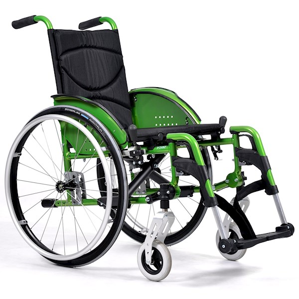 Wózek inwalidzki V200 GO wykonany został z aluminium. Niezwykła konstrukcja pozwala na łatwe poruszanie się. Zamiast podłokietnika zastosowano aluminiowy ochraniacz, co zdecydowanie ułatwia korzystanie z wózka. Jego konstrukcja jest konfigurowalna, co pozwala na zmianę, bądź rozbudowanie wózka o opcje dodatkowe spełniające bieżące wymagania użytkownika. Dodatkowo w każdej chwili istnieje możliwość zmiany takich parametrów jak: wysokość siedziska od podłoża, głębokość siedziska, kąt nachylenia siedziska.