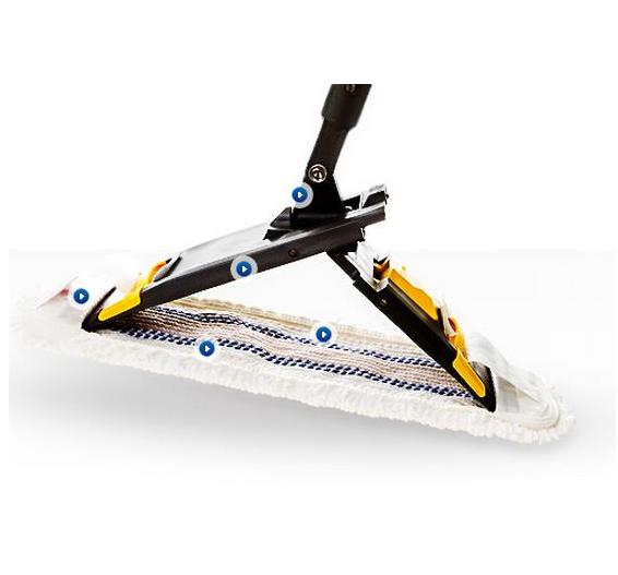 Łatwe mocowanie mopa za pomocą tasiemek i funkcjonalnych zacisków
