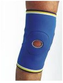 • z otworem na rzepkę • wygodny i łatwy w dopasowaniu • wykonany z przepuszczającego powietrze neoprenu • kolor niebieski • dostępny w rozmiarach (wg obwodu stawu kolanowego): XS (30-34 cm), S (35-39 cm), M (40-44 cm), L (45-49 cm)