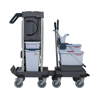 Kompaktowy wózek z dodatkową podstawą jezdną z wiadrami i prasą do obiektów o ograniczonej powierzchni magazynowania