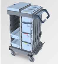 Kompaktowy i zwrotny z miejscem na przechowywanie całego sprzętu do sprzątania.