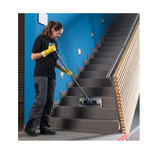 SprayPro jest w pełni profesjonalnym, gotowym do użycia, systemem czyszczenia podłóg zawierającym wszystko, czego potrzebujesz do mopowania bez używania wiadra. Wystarczy jedynie napełnić kij i masz już to, co niezbędne do czyszczenia zabrudzonych posadzek i klatek schodowych, a wszystko w jednym, łatwym w obsłudze urządzeniu.