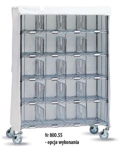 Wózki oddziałowe i do przewożenia bielizny. Wózek pokojowy do czystej bielizny. Wózek zaprojektowany do składowania i przewożenia czystej bielizny. Poliestrowe przykrycie jako opcja. Uchwyt na wieszaki na ubrania. Ramy ze stali chromowanej. Krążki odbojowe. Skrętne koła O 125 mm. Wózek pokojowy do czystej bielizny. 1830 x 457 x 1750 mm, 30 półek, 5 poziomy.