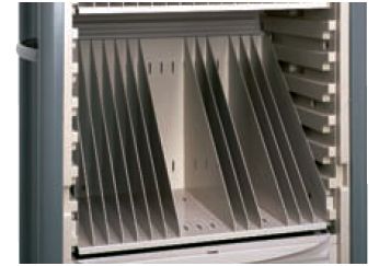 Uchwyt na dokumenty z podziałem i regulacją położenia (18 przegród). Dla dokumentacji medycznej 18 przegród – H 48 cm.