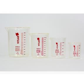 Zlewka TPX®, 250 ml skalowana z czerwonym nadrukiem, skok co 50 ml, wymiary ∅68 x 60 mm |