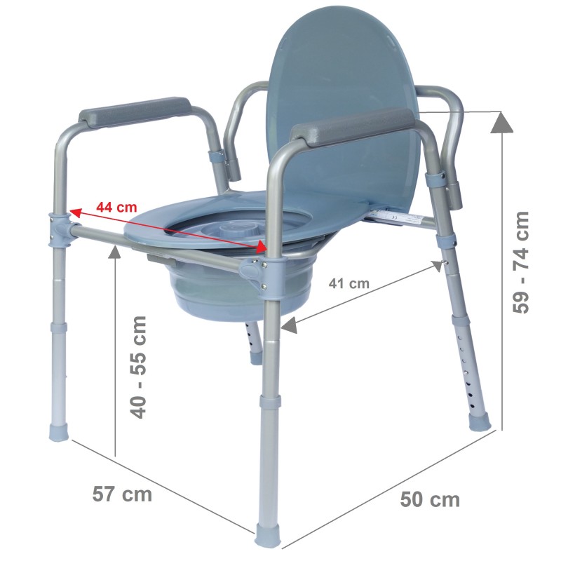 Składane krzesło toaletowe pomaga w codziennych czynnościach toaletowych osobom niepełnosprawnym, ze schorzeniami narządu ruchu oraz osobom mającym trudności w korzystaniu ze standardowej muszli klozetowej. Krzesło może być wykorzystane również jako poręcz ułatwiająca wstawanie ze standardowego sedesu.