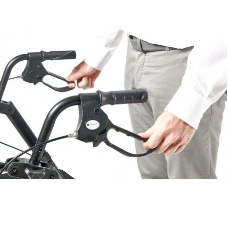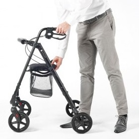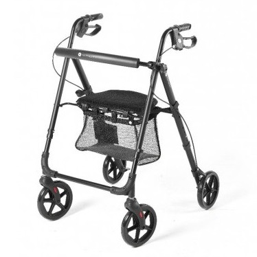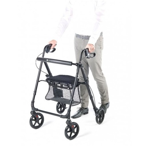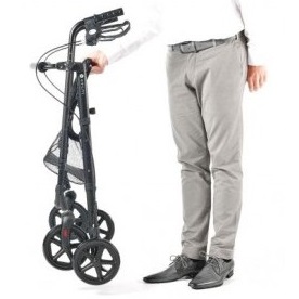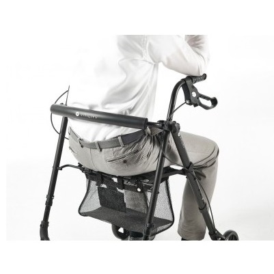 Kompaktowy rollator jest lekki i łatwy w użyciu. Ma miękkie wyściełane siedzisko i oparcie, ergonomicznie ukształtowane uchwyty dla lepszej przyczepności i dodatkowego komfortu oraz system hamujący i hamulec ręczny. Posiada również torbę pod siedzeniem dla bezpiecznego przechowywania rzeczy, które łatwo można tam włożyć i wyjąć. Posiada specjalne kółka dla lepszej przyczepności i nie pozostawia za sobą czarnych śladów.