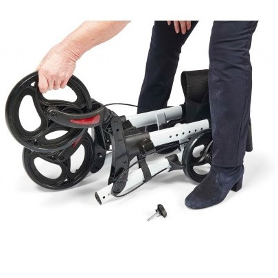 Rollator jest ergonomicznie zaprojektowany dla zapewnienia jak największej wygody użytkownika. Czarno-biały design jest nowoczesny i jednocześnie innowacyjny. Posiada oparcie dla pleców, torbę do przechowywania, torbę na zakupy i uchwyt na laski. Ma regulowaną wysokość i jest łatwy do przechowywania i przenoszenia.