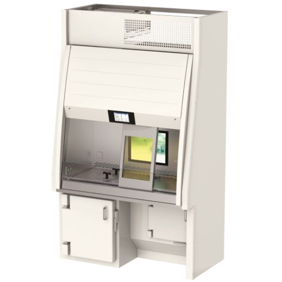 Osłonne komory laminarne, produkowane przez firmę Von Gahlen, zostały zaprojektowane zgodnie z certyfikatem EN 12469. Służą do przygotowaniaradiofarmaceutyków w sterylnym środowisku. Komory te należą do drugiejklasy bezpieczeństwa mikrobiologicznego, co zapewnia bezpieczeństwo zarówno personelowi, jak i przygotowywanym preparatom. Oprócz otwieranej pionowo, elektrycznie obsługiwanej szyby, komora posiada przesuwną ramę o szerokości 40 cm z oknem ołowianym. Blat roboczy wykonany jest z łatwo wyjmowanych płyt ze stali nierdzewnej. Zarówno wewnętrzne jak i zewnętrzne wykończenie spełnia wymagania przepisów farmaceutycznych dotyczących czyszczenia i walidacji. Komory na zewnątrz są gładkie, łatwe do dekontaminacji, wykończone lakierem w kolorze RAL 9002/