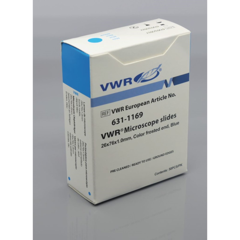 | Kolorowe matowe szkiełka mikroskopowe | 76×25 mm | 1,0 (-0,05/+0,1) mm | Niebieski | Szkło | 2.500 | 631-1169 |