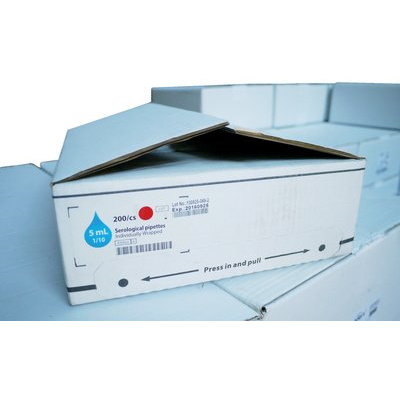 Sposób pakowania: Sterylne pipety są dostępne zarówno indywidualnie pakowane w workach „pociągnij aby otworzyć” lub workach plastik-plastik lub pakowane próżniowo w workach z zamkiem (10/25/50 pipet w worku). Nie sterylne pipety pakowane luzem próźniowo w workach z PE.