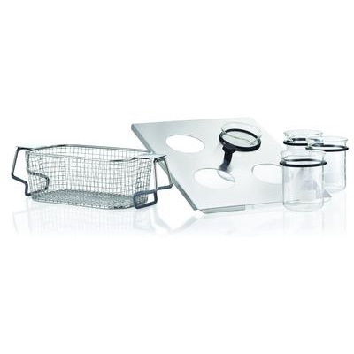 Myjka ultradźwiękowa USC TH: Z zegarem cyfrowym i podgrzewaniem łaźni regulowanym płynnie do 80 °C, dla wzmocnienia efektu mycia. Żółta dioda LED informująca o załączeniu grzałki