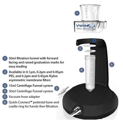 Każdy oddzielny element jest zgodny z podstawą Quick-Connect ™ i pozwala na wygodne przyłączenie węża próżniowego oraz obsługę jedną ręką. Dostępny uchwyt pierścieniowy można stosować ze standardowymi statywami laboratoryjnymi. Zestawy są wykonane z membran PES o wielkościach 0,1 µm (mycoplazma ) 0,2 µm ( sterylizacja ) 0,45 µm ( oczyszczanie ).Wszystkie elementy są sterylizowane promieniami gamma i wykonane zgodnie z wymogami FDA, grupy VI.