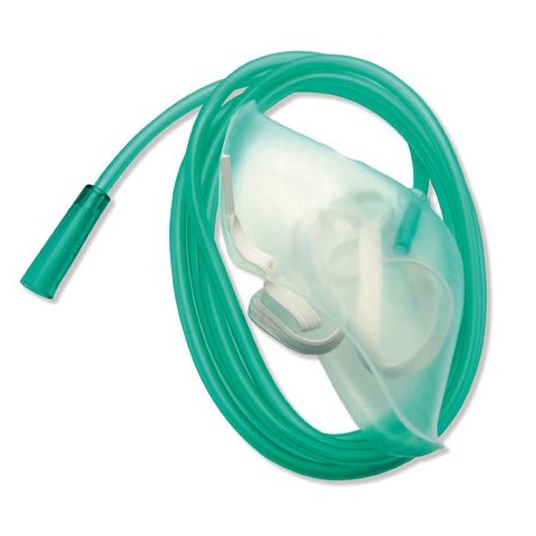 Maska tlenowa wyposażona w rurkę łączącą (PVC) o długości 150 cm.