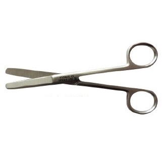 Proste nożyczki weterynaryjne z okrągłymi końcami, długość 15 cm.