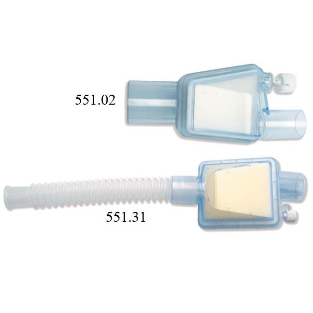 Filtry nawilżające z integralną elastyczną rurą łączącą. Długość elastycznej rurki łączącej 150 mm.