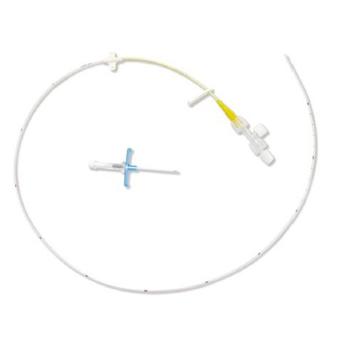 Cewnik centralny do wkłuć obwodowych z biostabilnego poliuretanu, dostępny jako cewnik pojedynczy lub podwójny.