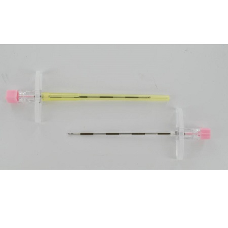 Igła do znieczulenia Touhy 16 lub 18G. Znakowane co centymetr. Przeźroczysty uchwyt.