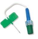 Igła motylek do przerywanych iniekcji ze zdejmowaną nasadką iniekcyjną.
