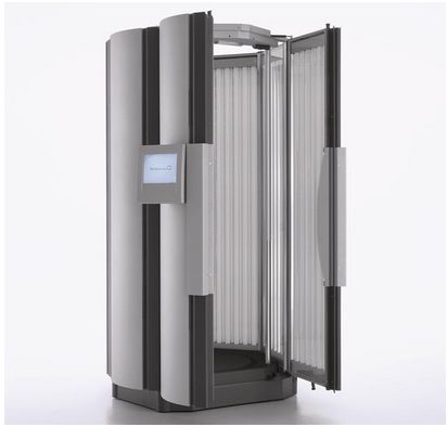 Kabina do fototerapii Waldmann UV 7002 wyznacza nowe standardy bezpieczeństwa, wydajności oraz komfortu użytkowania. Stały pomiar promieniowania UV przy pomocy specjalnych czujników zapewnia precyzyjne dawkowanie. Dzięki wydajnym lampom w połączeniu z zaawansowaną geometrią zwierciadeł, naświetlanie powierzchni ciała pacjenta jest niezwykle równomierne. Dołączone oprogramowanie DermaMate pozwala precyzyjnie zarządzać oraz planować przebieg terapii.