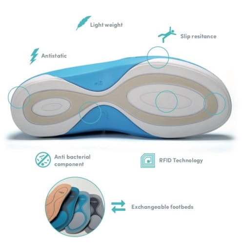 Dzięki swojej właściwości antystatycznej but gwarantuje bezpieczeństwo, antypoślizgowość i zamknięty obcas. Higieniczne buty można prać w temperaturze 40 ° C z wymienną anatomiczną wkładką. Wygodny krój dopasowany zarówno dla kobiet jak i mężczyzn, lekki i stabilizujący podeszwę stopy. Atrakcyjny, ponadczasowy design.