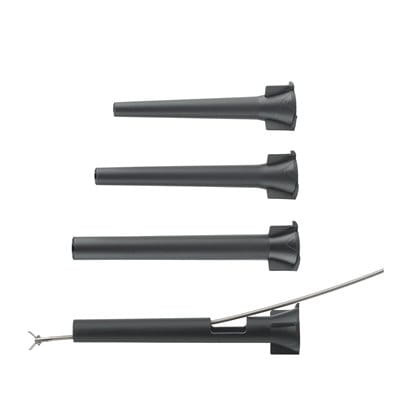W zestawie znajdują się 4 długie wzierniki otoskopowe: