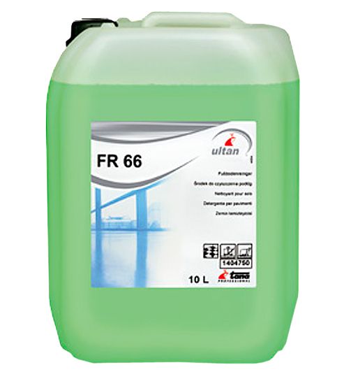 Łagodny środek do czyszczenia wodoodpornych powierzchni (podłóg). Szybko i skutecznie usuwa zanieczyszczenia wszelkiego rodzaju. Substancje natłuszczające chronią podłoże przed wyługowaniem i ponownym zbrudzeniem. Nadaje się również do powierzchni pielęgnowanych dyspersjami. Posiada przyjemny zapach, dobre własności zwilżajace. Skład: FR 66 zawiera anionowe środki powierzchniowo czynne (<5%), niejonowe środki powierzchniowo czynne (<5%), substancje zagęszczające, konserwujące oraz barwniki i substancje zapachowe. Wartość pH: 7. Działanie: Bardzo wydajny w użyciu. Posiada znakomite własności czyszczące. Dzięki tworzeniu warstwy ochronnej zapobiega wyługowaniu, ponownemu zabrudzeniu, powstawaniu zarysowań na gumowych powierzchniach, zapobiega ślizganiu. Nie zawiera rozpuszczalników. Zakres stosowania: nadaje się do stosowania na wszystkie woodoodporne podłogi. Odpowiedni do powierzchni pielęgnowanych emulsjami lub dyspersjami (np. B 250 sport, B 250 uniwersal lub LONGLIFE conductan, LONGLIFE vario, LONGLIFE uno, LONGLIFE hospital, LONGLIFE diamond). Nie nalezy stosować na surowe drewno.