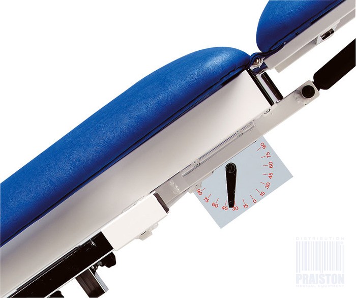 - Model ten wyposażony został w 3 poduszki pasy do przytrzymania pacjenta w czasie regulowania przechylenia stołu ,