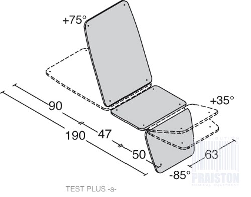 • Regulacja kąta sekcji pleców : od 0° do 75°,