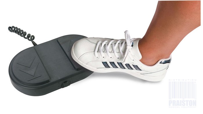 - PRA5ESS - W standardzie występuje pięcioczęściowe leże wykonane ze sklejki z podzielnym segmentem nożnym, Regulacja stołu odbywa się za pomocą siłownika elektrycznego oraz posiada koła z układem hamulcowym,