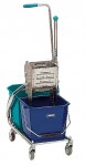 Wózek do pracy na mokro składający się z podwozia z kółkami, z dwóch plastikowych wiader oraz wyciskarki ze stali nierdzewnej. Rozmiar (DxSxW) 63x37x100 cm. Dwa wiadra plastikowe, oba o pojemniości 17 l. Waga wyciskarki plastikowej 4,4 kg. Waga 13 kg.